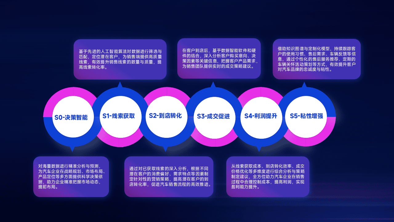 通过拓宽潜在客户来源、、优化线索分配并提高到店转化率,,,以增强销售效率。。同时,,,利用线索数据不断优化分析模型,,,,有效提升转化率,,,,扩大营销影响力。。。